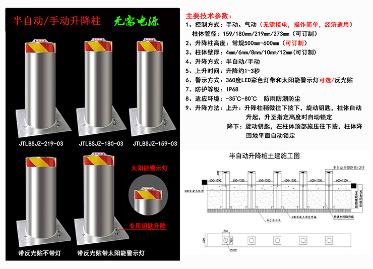 5、半自動(dòng)升降柱可以不影響行人、自行車通過,管理您的專用車位,避免您的專用車位被占用。